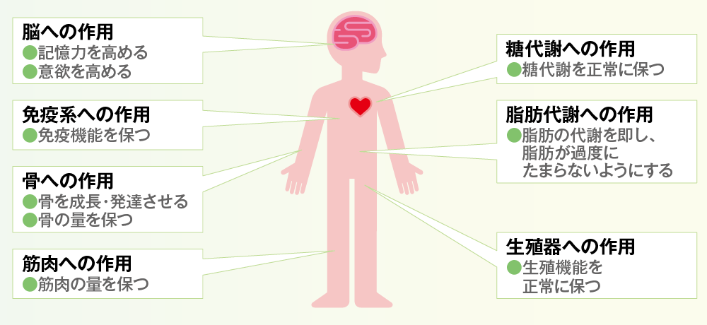 脳に栄養が足りなくなると十分なホルモンが出ず、不調を感じます。脳に栄養が行き渡るとホルモンバランスが整うので、女性特有の生理痛や生理不順、更年期障害にも効果的です。