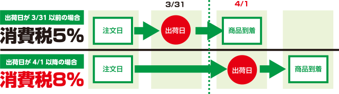 2014年3月31日以前の注文であっても新税率が適用されます。