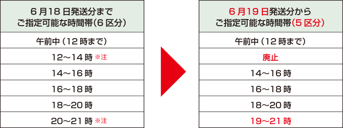 2017年6月19日発送分以降、送り状の配達時間の指定枠が「12時~14時」・「20時~21時」の荷物は、
